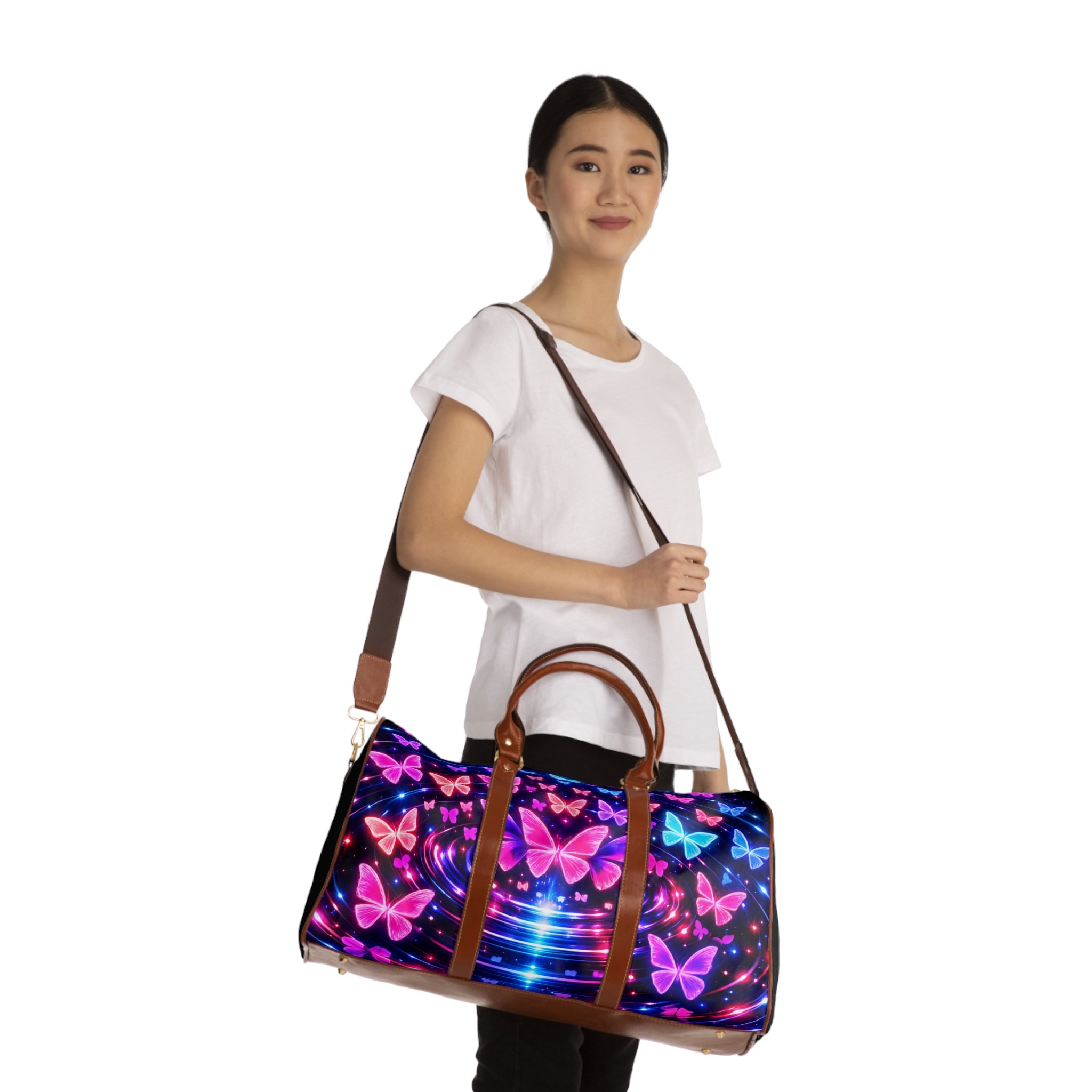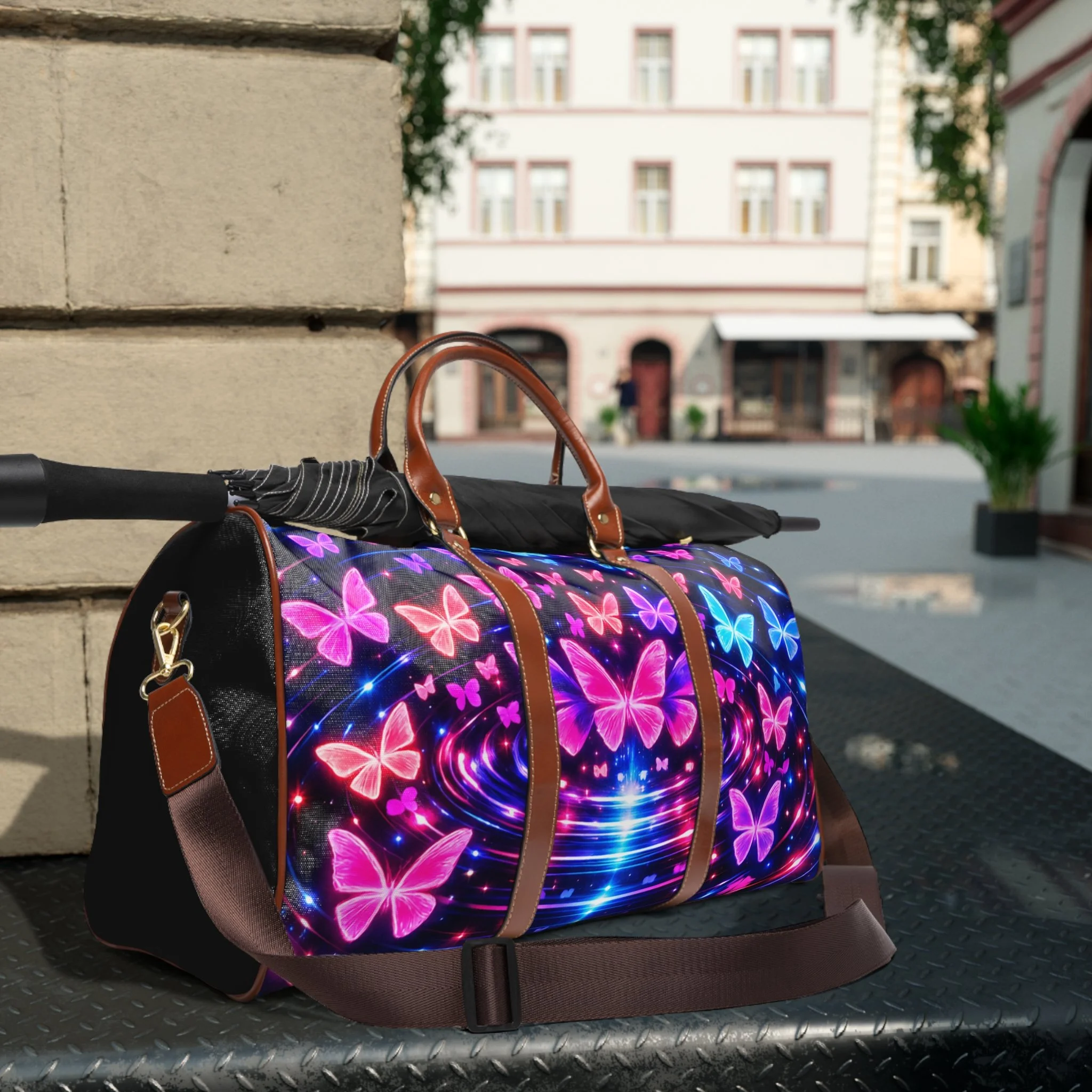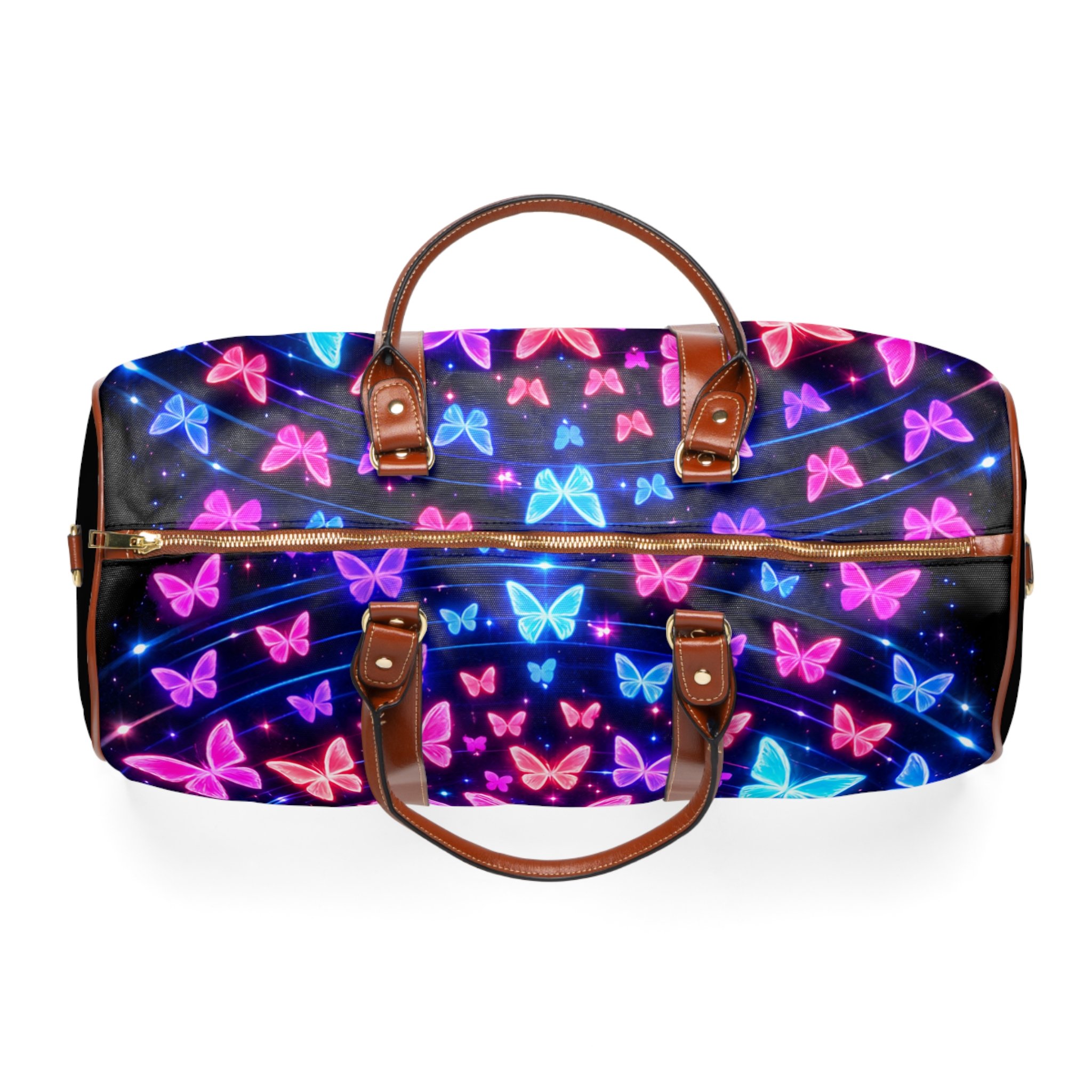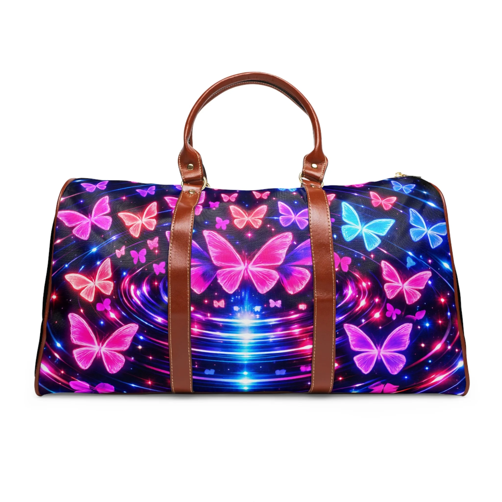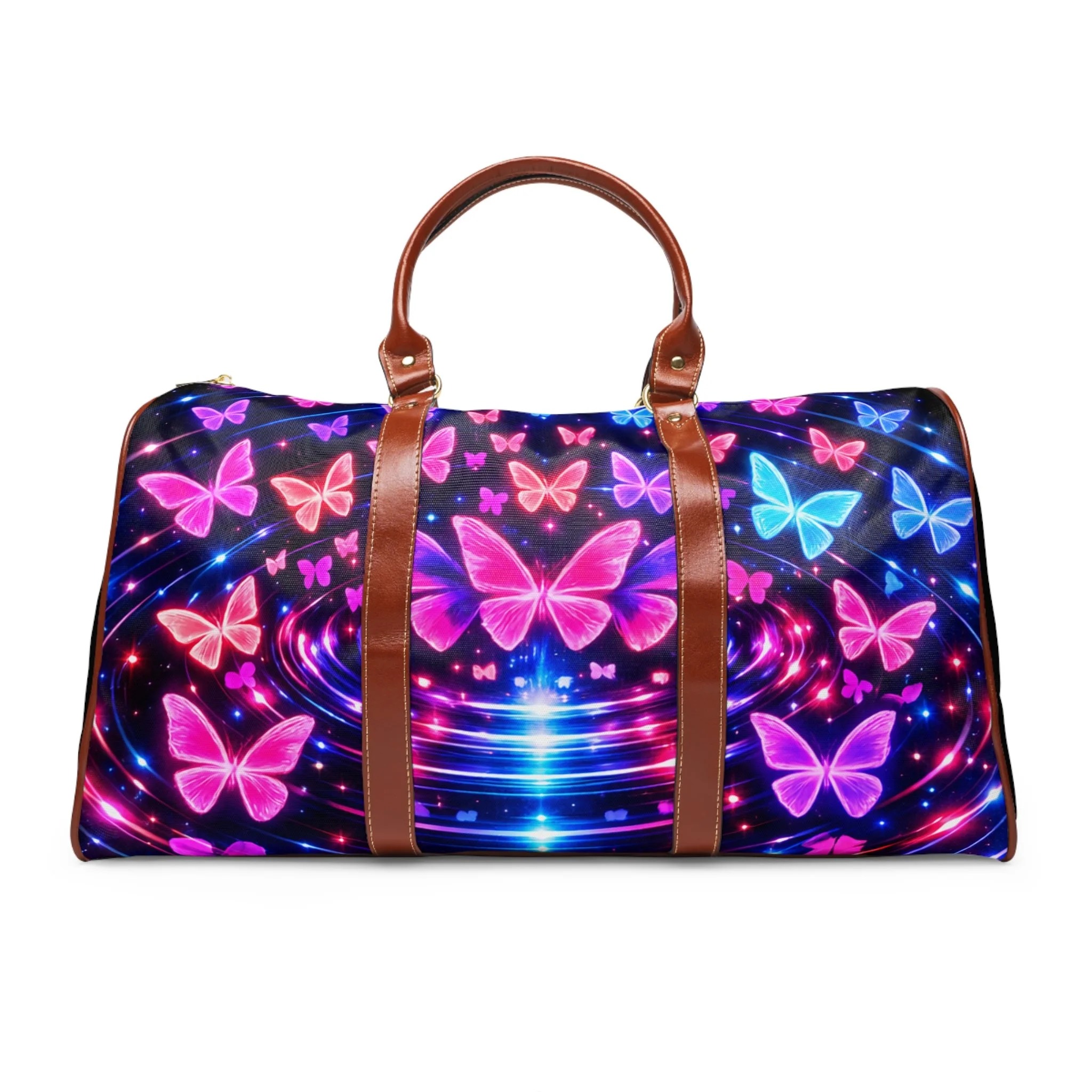 Neon Butterfly Waterproof Travel Bag Duffel Tote